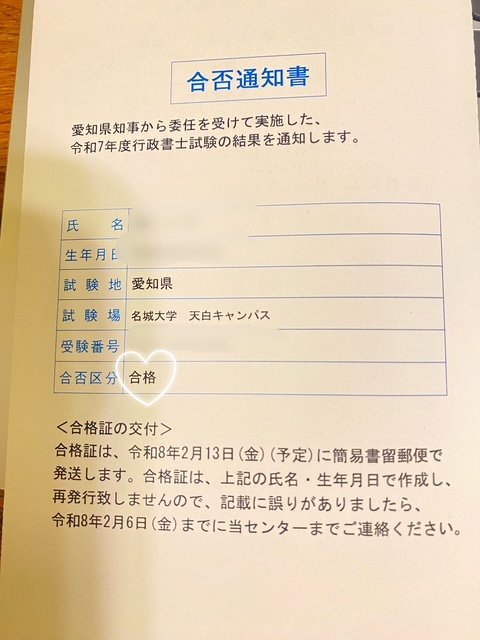 その後、合格通知も届きました。